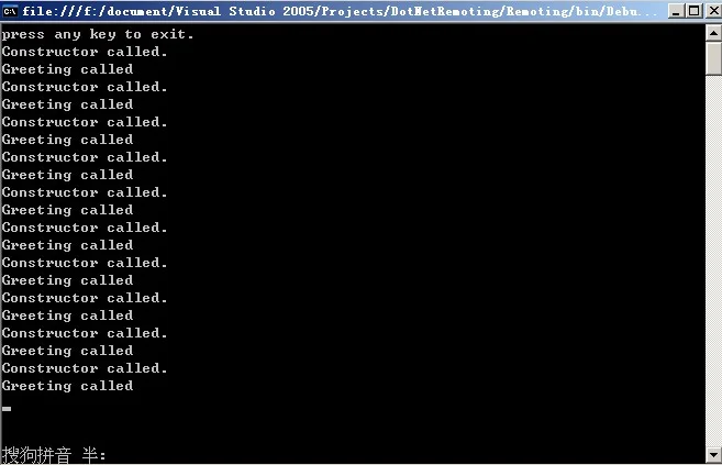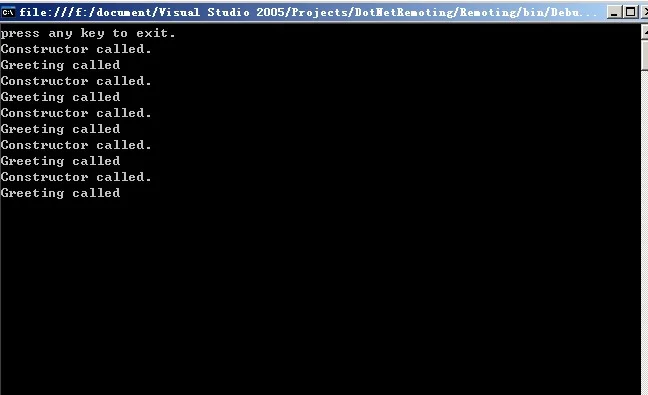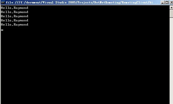 设置解决方案的属性为多启动项目,同时启动RemotingClient和RemotingServer 项目,按F5启动调试则可以看到下面的结果:
