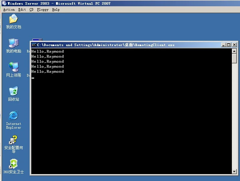 再点击虚拟机里边的RemotingClient.exe就可以看到下面的运行结果