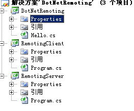 再新建一个.net Remoting服务器上要用到的控制台项目RemotingServer,且引用DotNetRemoting项目以及System.Runtime.Remoting组件