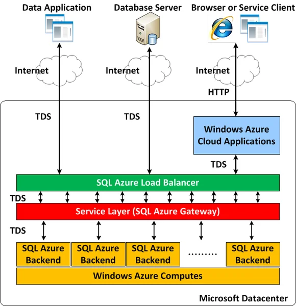 SQL Azure 数据库是微软提供的云端数据库服务,其体系结构参考如下图: