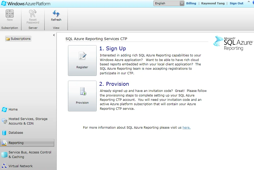 SQL Azure 上的 Reporting Services (目前状态为 CTP),可以让企业与开发人员直接利用 SQL Azure 数据库来产制 Business Intelligence 的解决方案,SQL Azure Reporting Services 可支持 SQL Server Reporting Services 的大部份功能,并且沿用 Business Intelligence Development Studio 作为报表开发的工具。