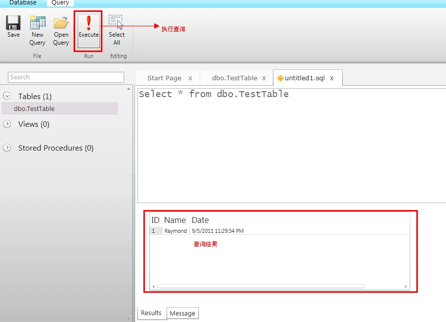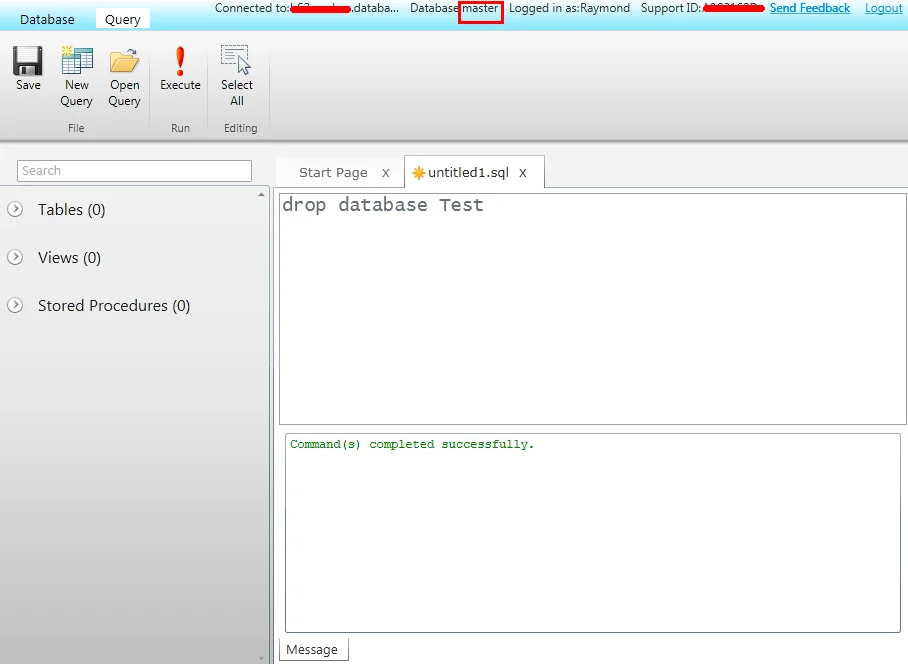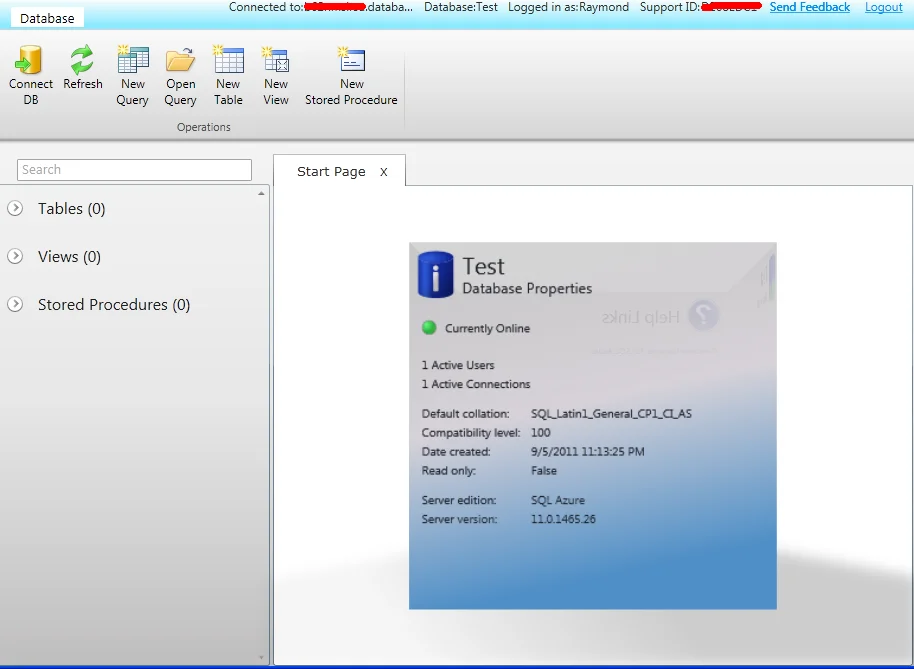 连接成功后,即可查看到数据库的管理主界面,提供包括创建表、视图、存储过程、执行查询等等功能: