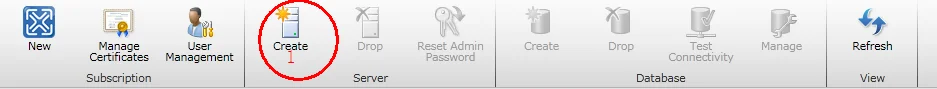 在菜单栏的数据库组中点击Create按钮开始创建数据库。