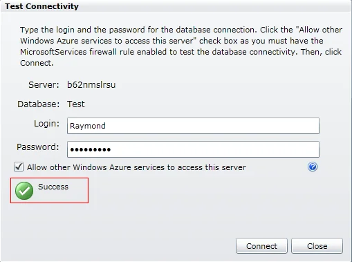 点击相应的数据库,进入此数据库界面,点击菜单栏的Test Connectivity按钮测试连接,如下图代表测试成功: