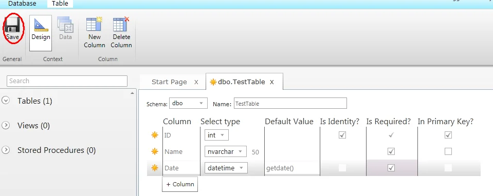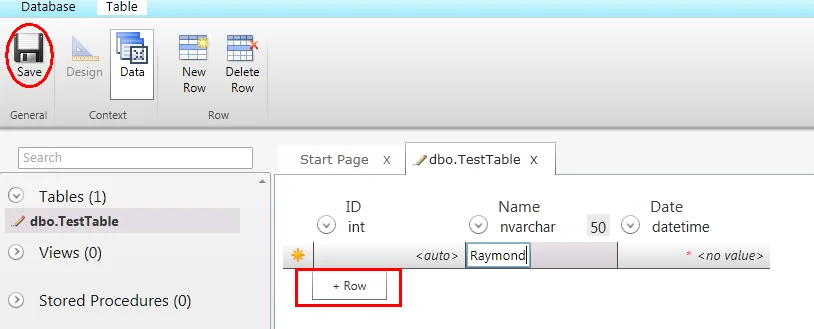 点击New Table按钮创建表TestTable,点击Save按钮保存: