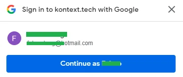 For website implemented Google one tag sign up or sign in like Kontext, a popup window will show up if the user already signed into Google accounts. Once the user click 'Continue as ...' button, Google will return credential details to the callback service; the credential can be used to retrieve more information about the Google user.