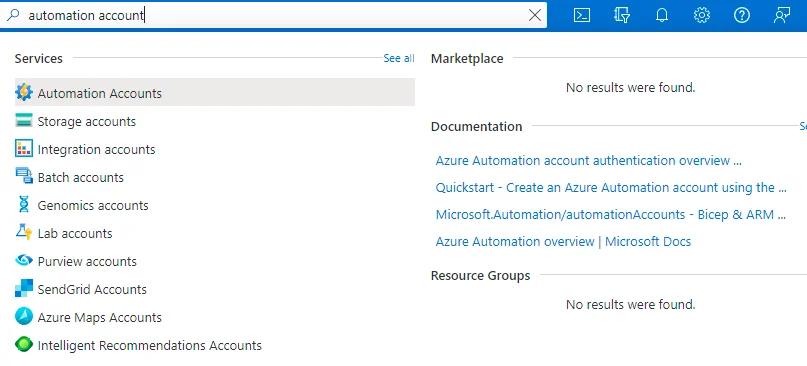 Create automation account