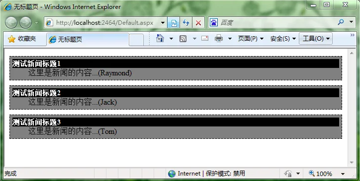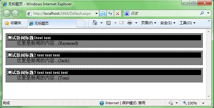 浏览Default.aspx 我们可以看到效果如下: